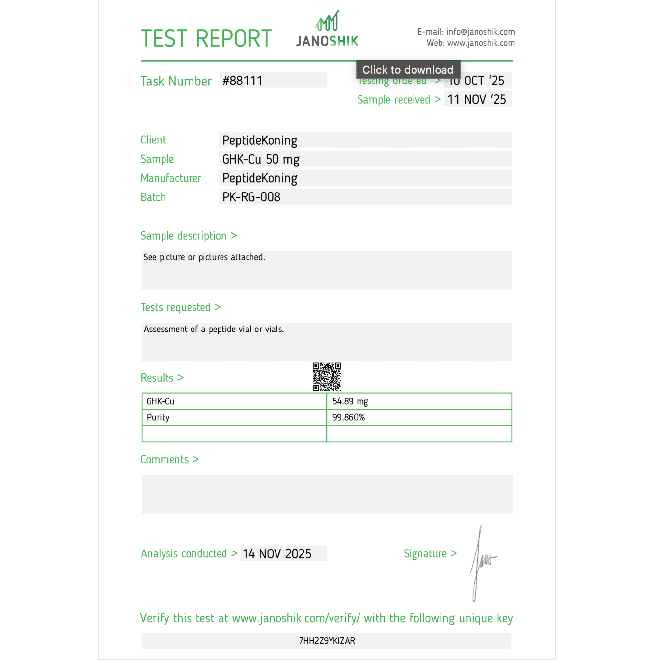 ➡️ Janoshik Testrapport – GHK-Cu 50mg
