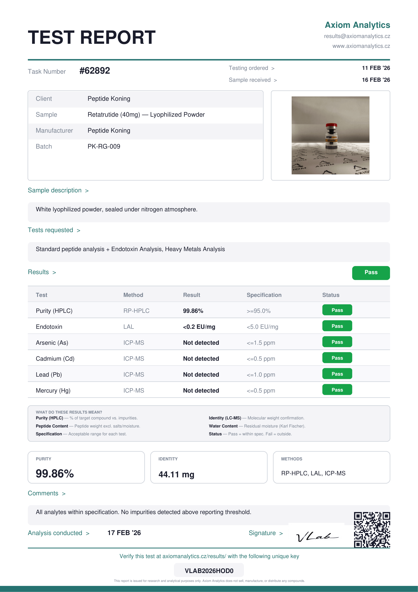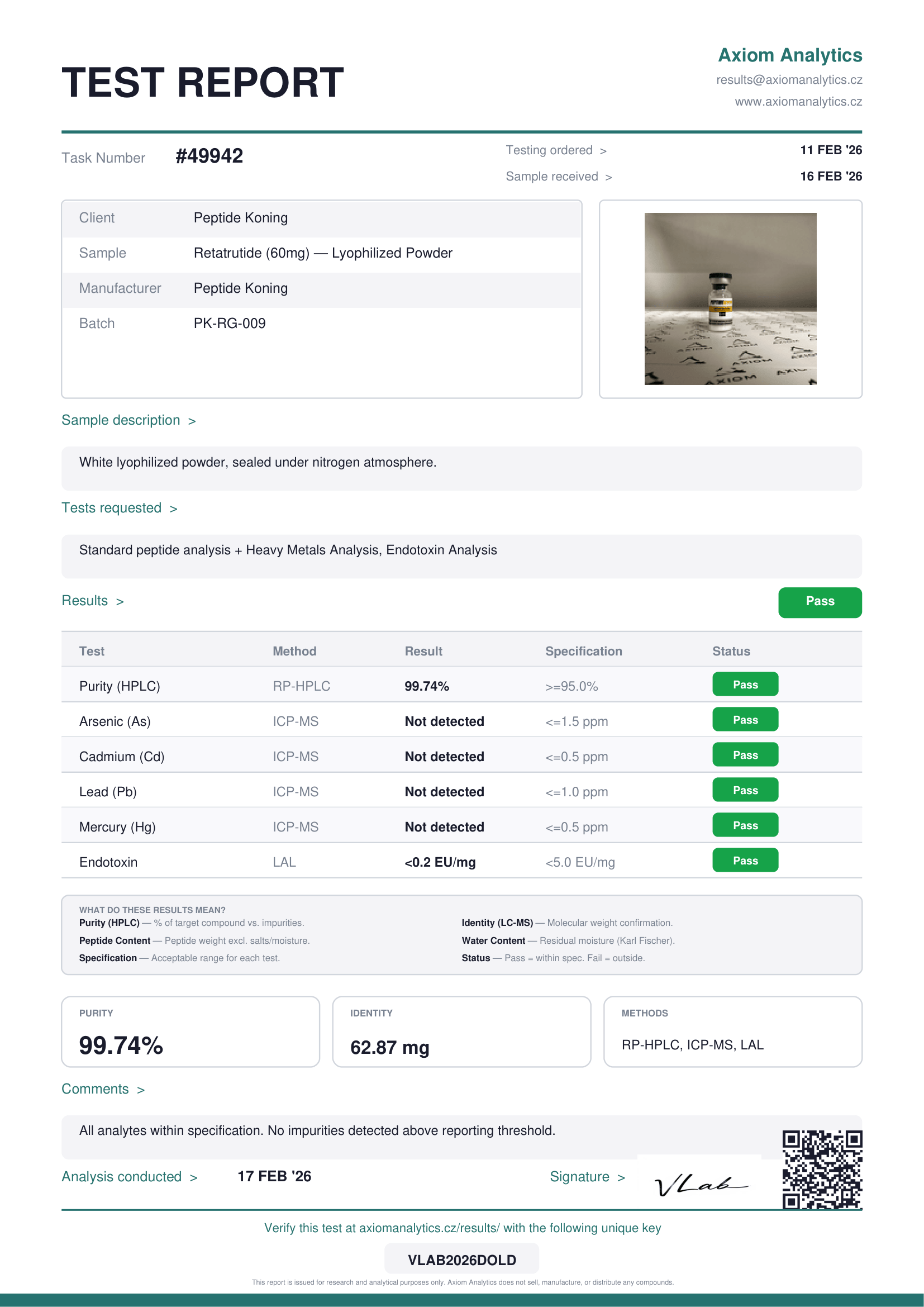 | Reta 60mg | Bekijk officieel labresultaat |